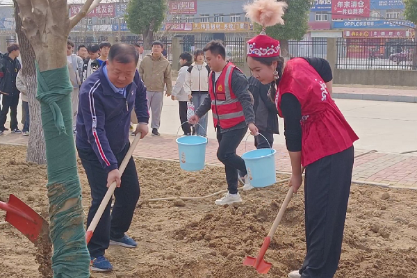 阿依舒阿克与各民族学生一道,积极参加“中华民族一家亲 携手共建团结林”义务植树活动,以结对方式认养“同心树”,做好浇水等养护工作。