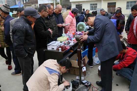 “湖北职院老师们真是及时雨,帮我们这些不方便上集市去修家电的人一个大忙啊!关键是他们都耐心细致,还免费服务。”汽车学院的家电维修服务小队,细心维修村民送来的故障电饭煲、电水壶、电风扇、电吹风等家用电器,详细询问家电故障现象,分工协作,认真检测,免费更换元器件,维修电器30多台,为农户居民解决了实实在在的困难。
