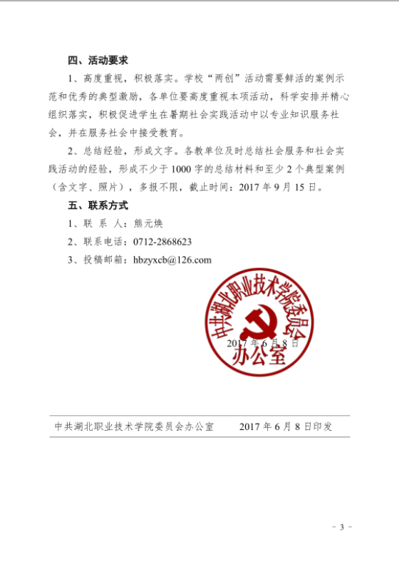 关于开展2017年“夏之行•大孝湖职”社会服务与社会实践系列活动的通知