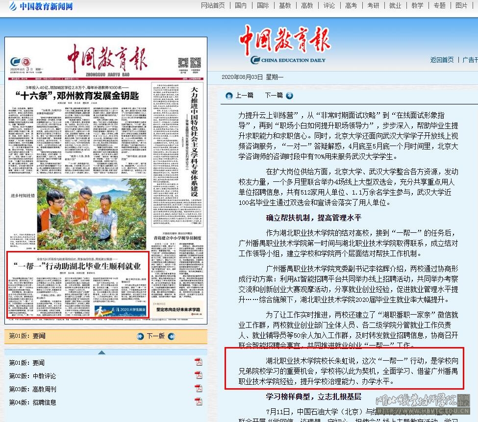 为了让工作实时推进,两校还建立了“湖职番职一家亲”微信就业工作群,两校就业创业部门全体人员、各二级学院分管就业工作负责人、就业辅导员等50余人加入工作群,及时转发就业招聘信息,协商召开联合智能招聘会事宜,共同推进就业创业“一帮一”工作。