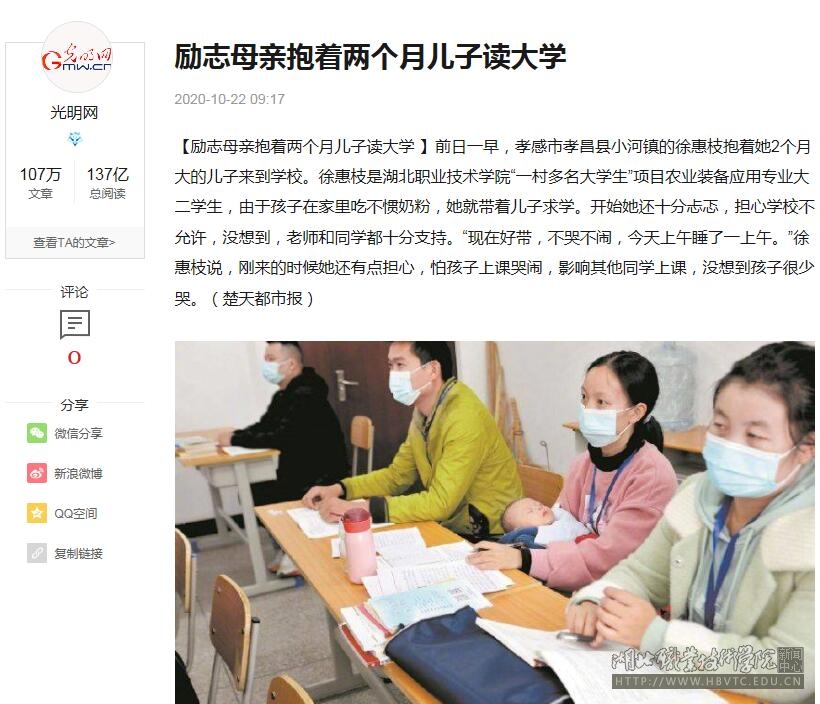【光明网】励志母亲抱着两个月儿子读大学