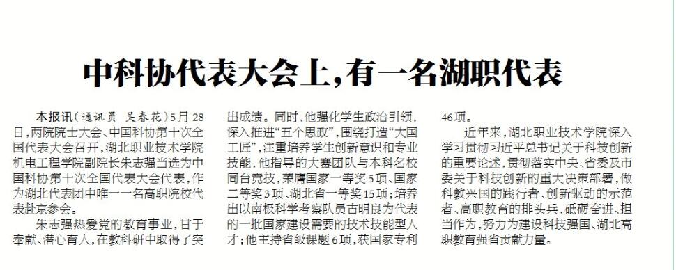 【孝感晚报】中科协代表大会上,有一名湖职代表