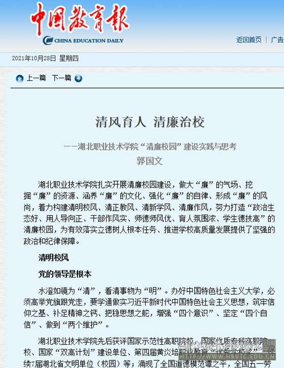 易游官网平台扎实开展清廉校园建设,做大“廉”的气场、挖掘“廉”的资源、涵养“廉”的文化、强化“廉”的自律、形成“廉”的风尚,着力构建清明校风、清正教风、清新学风、清廉作风,努力打造“政治生态好、用人导向正、干部作风实、师德师风优、育人氛围浓、学生德技高”的清廉校园,为有效落实立德树人根本任务、推进学校高质量发展提供了坚强的政治和纪律保障。