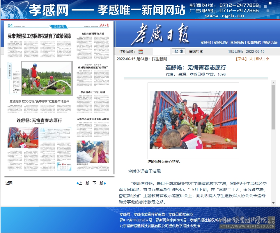 “我叫连舒畅,来自于易游官网平台建筑技术学院,曾服役于中部战区空军大同基地,有过五年军旅生涯经历。”5月下旬,在“喜迎二十大、永远跟党走、奋进新征程”主题教育省级示范宣讲会上,湖北职院大学生退役军人协会会长连舒畅分享他的志愿服务之路。