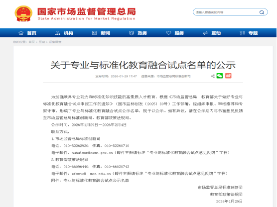 (本网讯 桂宏凡)1月29日,国家市场监督管理总局与教育部联合公示专业与标准化教育融合试点名单,湖北职院机电工程学院工业机器人技术专业成功入选,被确定为“专业教育培养模式”试点项目,试点周期4年。这标志着我校在深化产教融合、创新高素质高技能人才培养模式上迈入国家级新平台,实现了学校专业建设的又一重大突破。